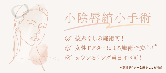 • 小陰唇縮小手術で抜糸しない手術法もあるが通常よりも高額